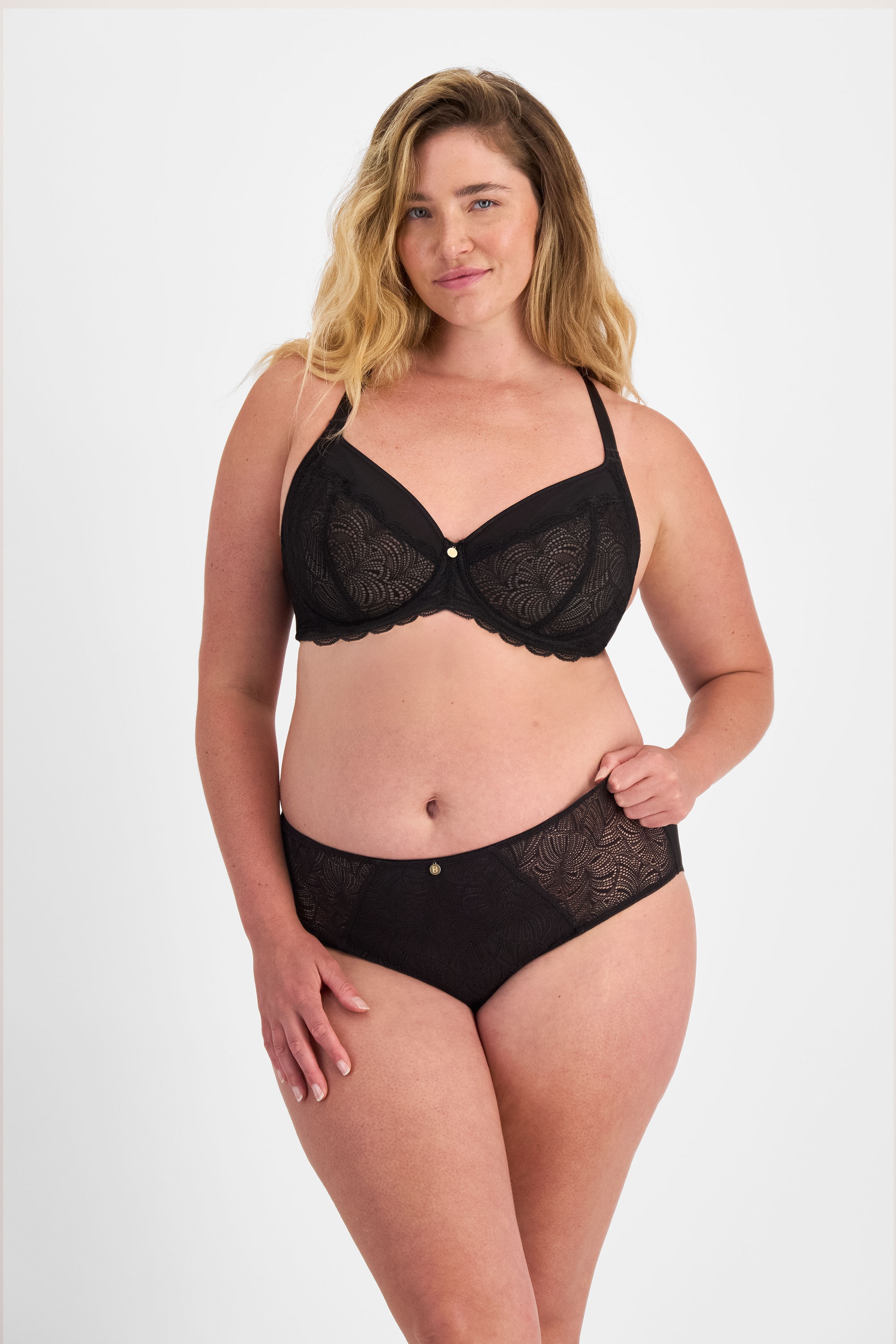 - • Low front styling versatile under clothing