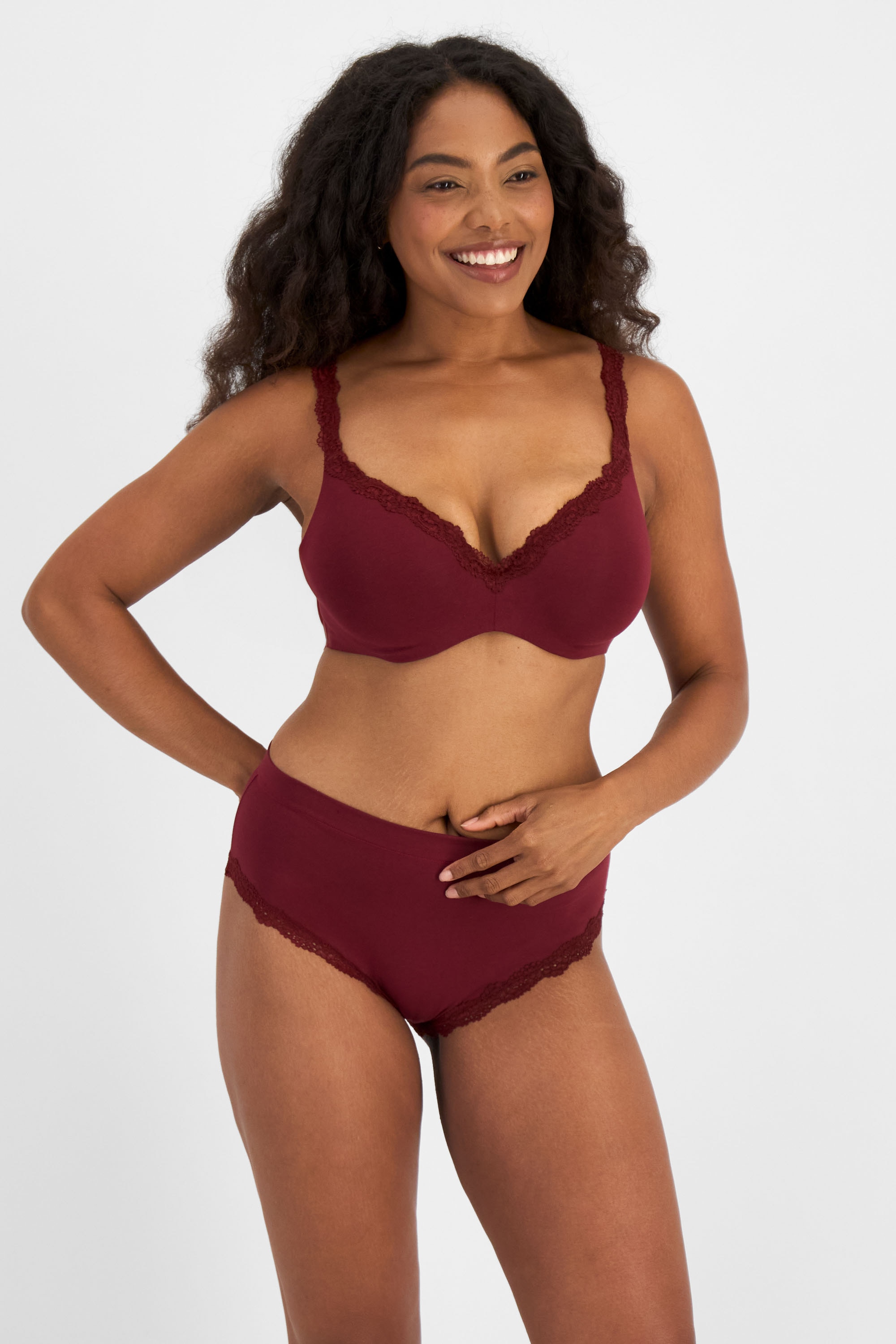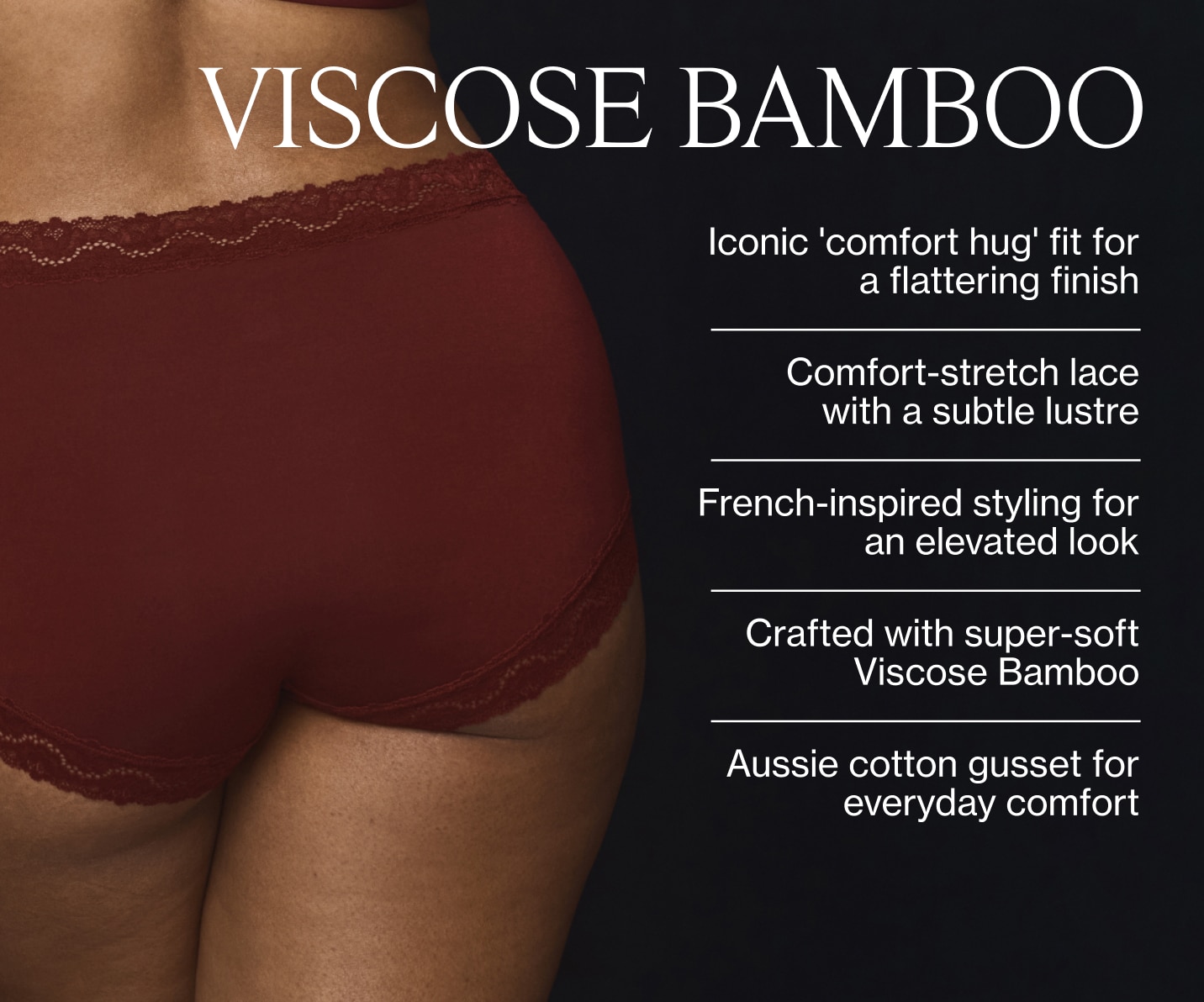 From top to bottom, Marais has you covered! Super soft Viscose Bamboo, a flattering V-neckline and soft lace details come together in an easy, feel-good cami designed to layer beautifully or wear on its own. Made to pair perfectly with your favourite Berlei briefs. Because a matching set just hits different.